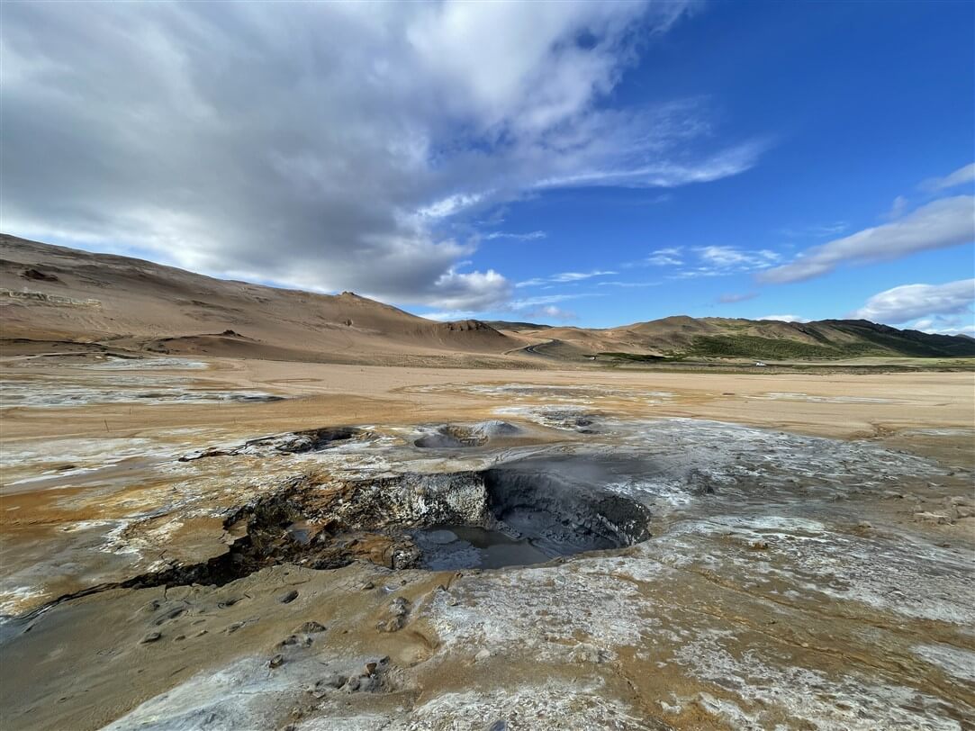 Tra vulcani in eruzione, geysir e sbuffi della terra, in Islanda non ci si annoia mai. Tra i luoghi da non perdere ci sono sicuramente le solfatare di Hverir, situate nel nord del paese, in una delle aree geotermali più attive. Qui si passeggia tra crateri pieni di fango che ribolle ad 80 – 100°, fumarole visibili da chilometri di distanza e colori che passano dall’ocra al grigio, dal bianco al giallo. La visita è accompagnata da un intenso odore di zolfo tipico di luoghi del genere. Il bello di queste solfatare è che pur essendoci delle zone delimitate, si è liberi di passeggiare dove si vuole, con la dovuta attenzione.