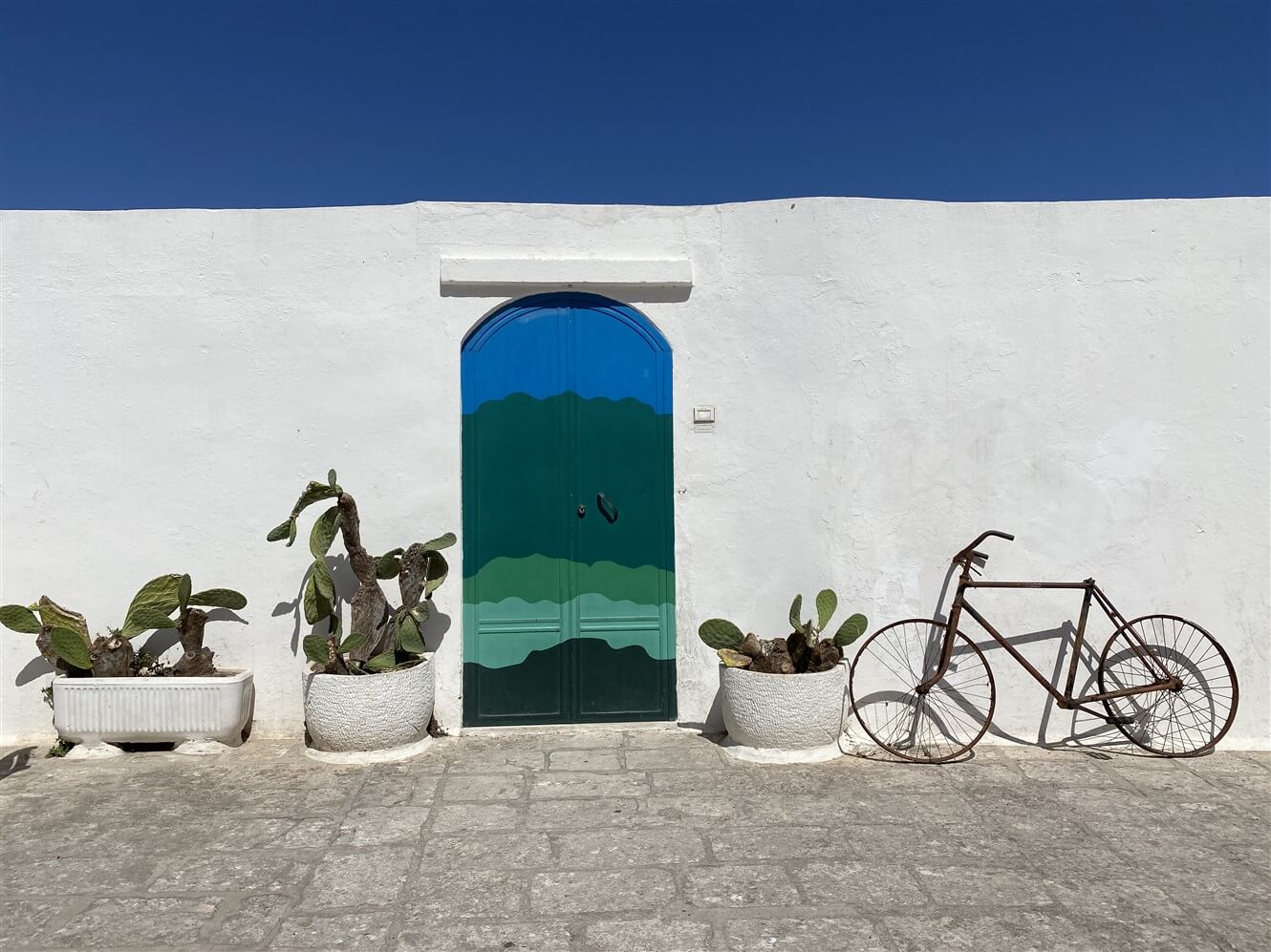 In cima alla scalinata del Borgo Antico Bistrot e poco lontano dalla cattedrale, si trova la Porta Blu di Ostuni, considerata da molti come il simbolo della Città Bianca. Si tratta della comune porta d’ingresso di una casa vacanze, dipinta nei colori del blu e del verde a richiamare quelli delle acque del mare Adriatico. Proprio di fronte a questo luogo divenuto un’icona, c’è un’altra porta dai colori sgargianti perfetta per una foto ricordo. Entrambe le porte le potete trovare in via de Landria Balsamo.