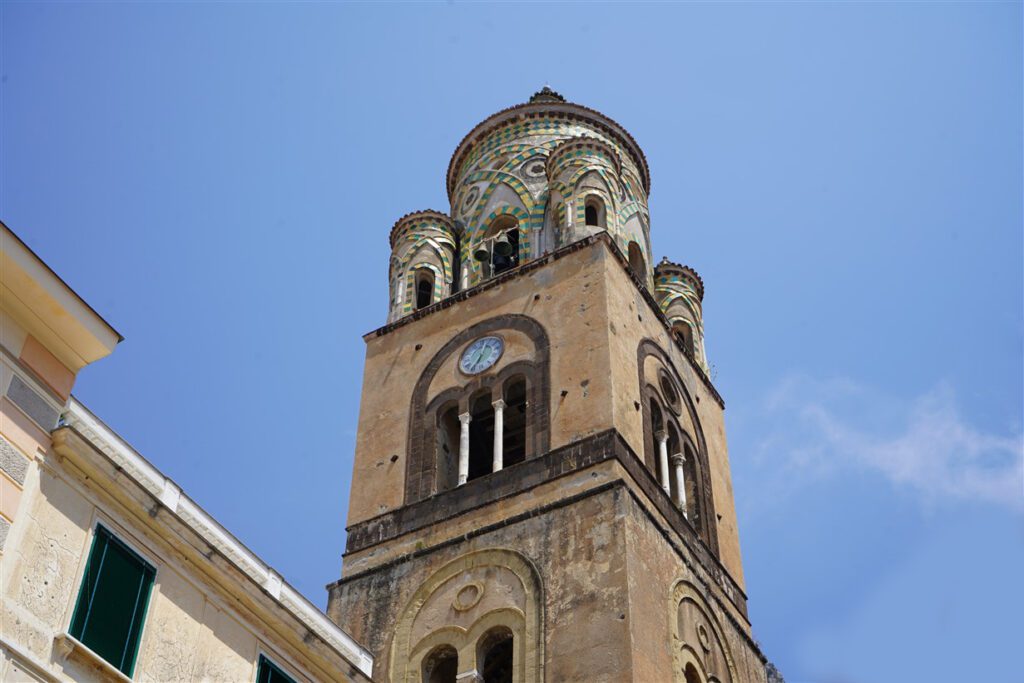 L’interno si presenta con un’impronta tipicamente barocca con alte colonne rivestite in marmo ed un soffitto a cassettoni. Da non perdere il grande Crocifisso Ligneo risalente al XIII secolo, custodito nella vicina Basilica del Crocifisso. Adiacente al Duomo di Amalfi, poi, si trova il campanile realizzato in stile romanico, ricoperto di maioliche a mosaico e risalente al 1276.