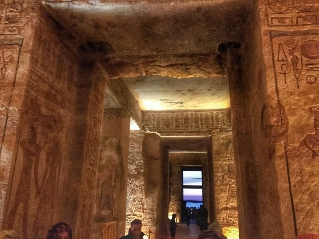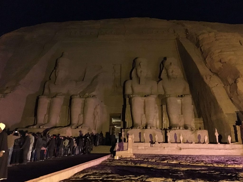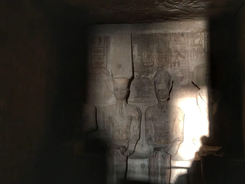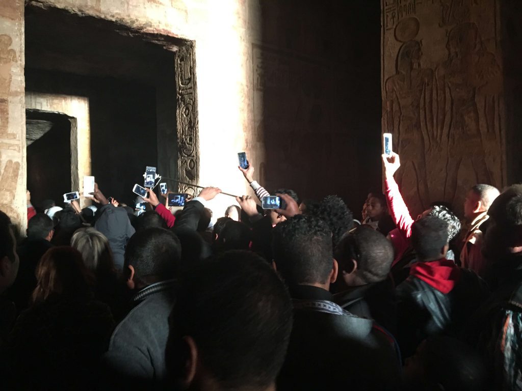 Il primo raggio del sole colpisce il volto del faraone. Un pò alla volta, poi, i raggi illuminano anche Amon-Ra e Ra. L’unico a rimanere in ombra è il dio Ptah, considerato dio delle tenebre. Trascorsa una mezz’ora, la luce invade ormai il tempio, le facce tornano ad essere inghiottite dall’oscurità mentre la gente continua a scattare foto all’impazzata.