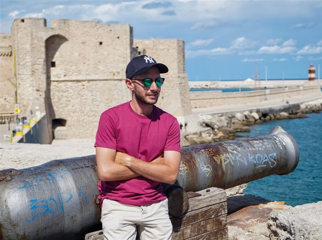 The last stop on this 8-day itinerary in Apulia is Ostuni, the white city. The best way to discover it is to get lost in the alleys of the old town, a maze of narrow streets nestled between deep white buildings. Ostuni can be visited in an afternoon and some stops are a must, such as: the Blue Door, considered the symbol of the city, and the Cathedral, built between 1469 and 1495 and characterized by stone architecture that, thanks to the contrast with the intense white of the houses, makes it visible from miles away. Impressive is the large central rose window, considered by some to be the most beautiful in all of Apulia. If you can’t give up the beach, then you have as much as 17 km of coastline at your leisure, separated from the city only by an expanse of centuries-old olive trees. Among the most famous seaside destinations, I recall Torre Guaceto and the nearest Torre Pozzelle.