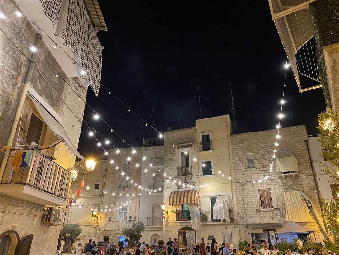 The first stop is Bari, which, however, I could only appreciate in the evening. It is a city of great charm, with a well-kept historic center that offers scenes of daily life such as three old ladies busy preparing orecchiette and cavatelli. Of course in the evening the monuments are all closed but I can still appreciate their well-lit exteriors. Above all, the imposing 12th-century Cathedral of San Sabino and the Basilica of San Nicola, built in the Romanesque style between 1087 and 1197, capture my attention. Between a stroll along the Nazario Sauro waterfront and a stop in the quaint Largo Albicocca, known as the lovers’ square, it’s dinnertime. At the suggestion of a Barese doc friend, I choose to stop at “La Uascezze,” which serves traditional Bari dishes, where I finally taste the legendary focaccia and their specialty: potatoes, rice and mussels. A real delicacy!