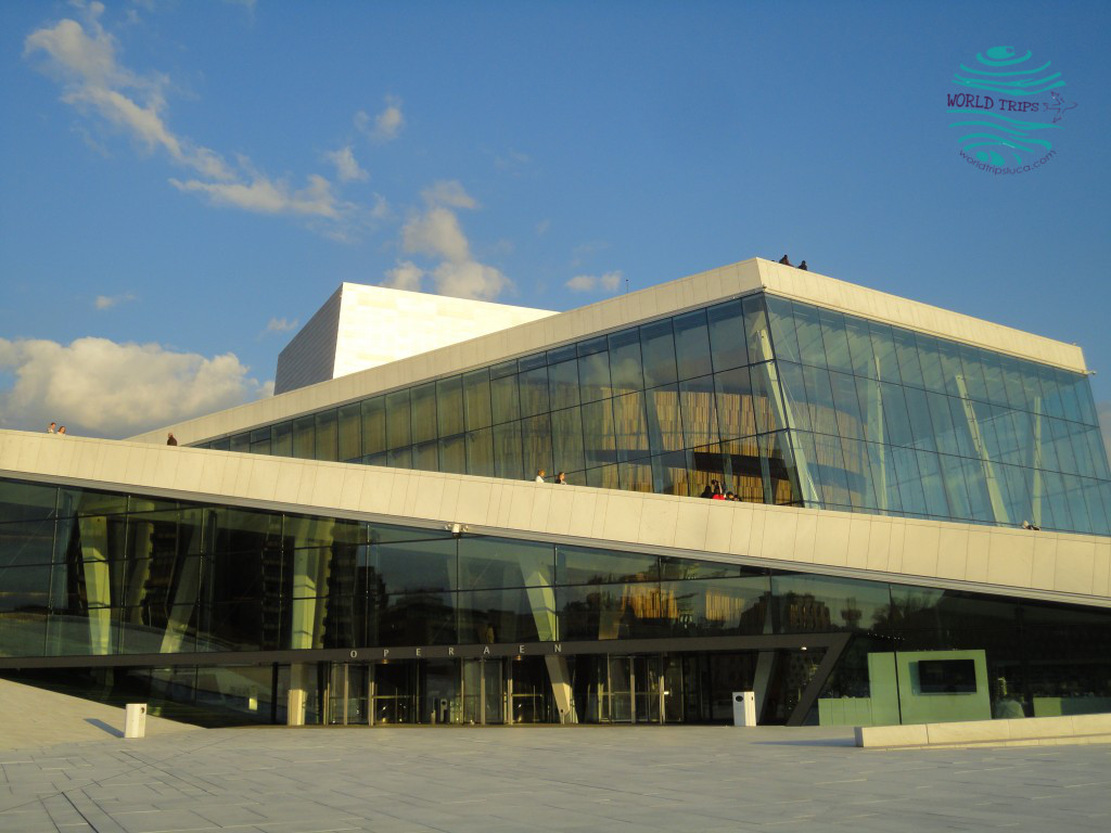 Il nuovo Teatro dell’Opera di Oslo si presenta come un iceberg arenato vicino al porto in fondo al fiordo di Oslo e si inserisce in un più ampio progetto di riqualificazione di quest’area della città priva di attrattive, in vista della creazione della Città del Fiordo. Inaugurato il 12 aprile 2008 alla presenza di re Harald V e di tanti ospiti stranieri illustri, il teatro è dotato di tre spazi per gli spettacoli: il teatro principale con 1369 posti a sedere, la Scena 2 con 400 posti e il teatro di prova con 200 posti. Pensate che per la sua costruzione è stato necessario meno tempo e meno materiali di quelli preventivati. I lavori sono terminati con 5 mesi di anticipo, per un totale di quasi 5 anni, con un cospicuo risparmio anche sulla cifra preventivata, il che per noi italiani suona davvero incredibile se pensiamo alle tante opere costosissime e incompiute del nostro bel paese.