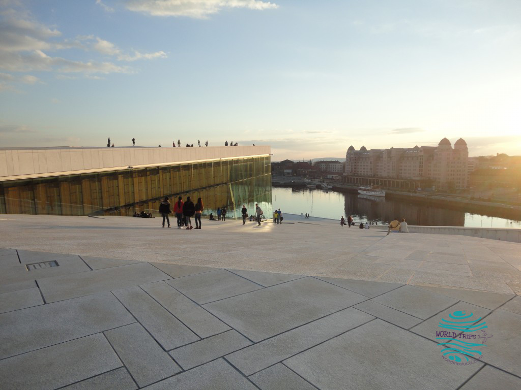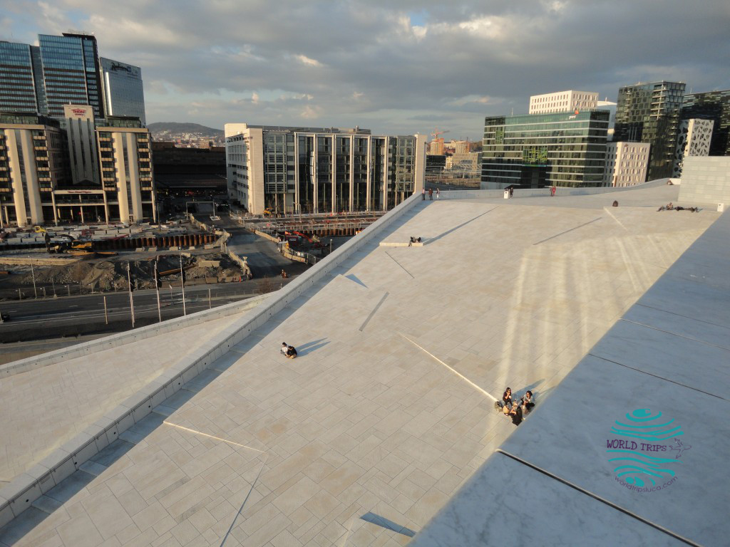 Nonostante la posizione un po’ decentrata, la Norske Opera è divenuta una meta non solo di appassionati d’opera ma anche di semplici turisti incuriositi dalla struttura moderna e affascinante. Fino al 2013 si conta che siano passati a visitarla quasi 10 milioni di persone. Tra le tante curiosità vi segnalo la possibilità di salire, attraverso una rampa realizzata in granito e marmo bianco di Carrara, come gran parte della struttura, fin sopra il tetto dove molti prendevano il sole, si riposavano, leggevano un libro o praticavano sport. La copertura dell’edificio nel complesso occupa lo spazio di ben 4 campi di calcio.
