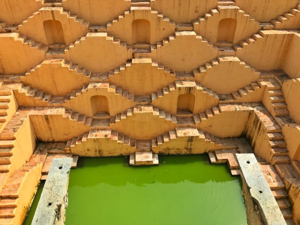 Approfittando della mattinata di sole, ci dirigiamo verso il luogo simbolo di Jaipur: l’Amber Fort, situato sull’omonima collina. Prima di cominciare la salita verso il forte, però, mi fermo in un luogo davvero particolare, chiamato Panna Meena Ka Kund, un nome che è tutto un programma!