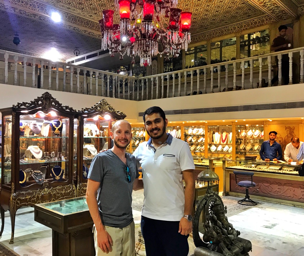 Colgo l’occasione per fare un po’ di shopping in alcuni negozi tipici tra cui anche Marcopolo, una gioielleria dal nome tipicamente italiano, in cui mi fermo a fare quattro chiacchiere con Gourang Khandelwal, erede di questa famiglia di gioiellieri che trasformano le pietre preziose in gioielli. Non si tratta di un semplice negozio per turisti ma di una vera e propria istituzione a Jaipur. Le pareti di questo spazio organizzato su più piani, raccontano la storia della città rosa con raffigurazioni dipinte a mano ed antichi reperti d’arte indiana.