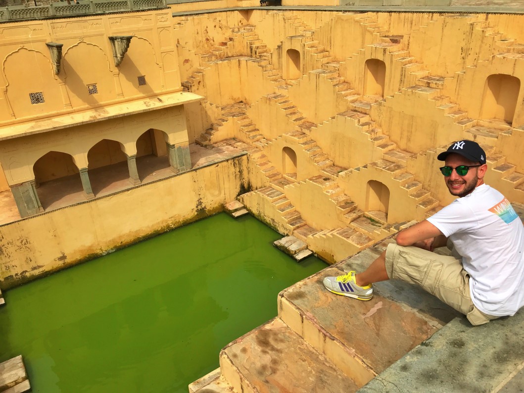 Approfittando della mattinata di sole, ci dirigiamo verso il luogo simbolo di Jaipur: l’Amber Fort, situato sull’omonima collina. Prima di cominciare la salita verso il forte, però, mi fermo in un luogo davvero particolare, chiamato Panna Meena Ka Kund, un nome che è tutto un programma!