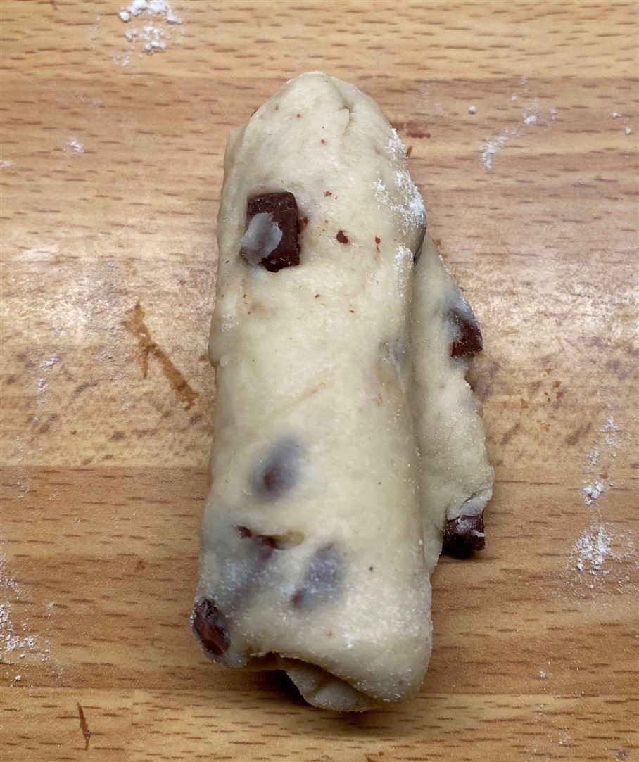 A questo punto, per creare la tipica forma dei Pangoccioli, prendete un piccolo panetto e stendetelo. Poi, avvolgetelo dall’alto verso il basso ed avvolgetelo ancora una volta fino ad ottenere la forma di un piccolo panino.