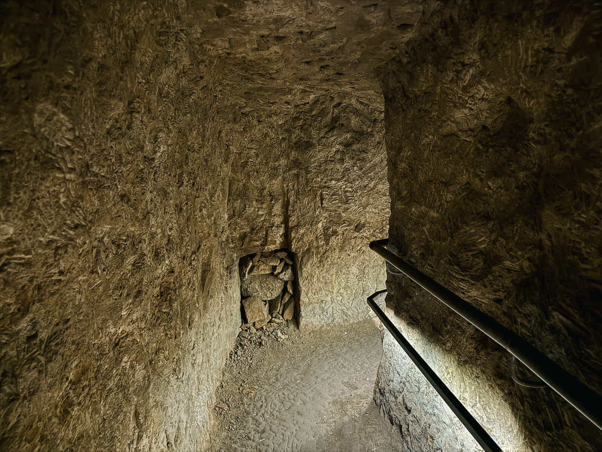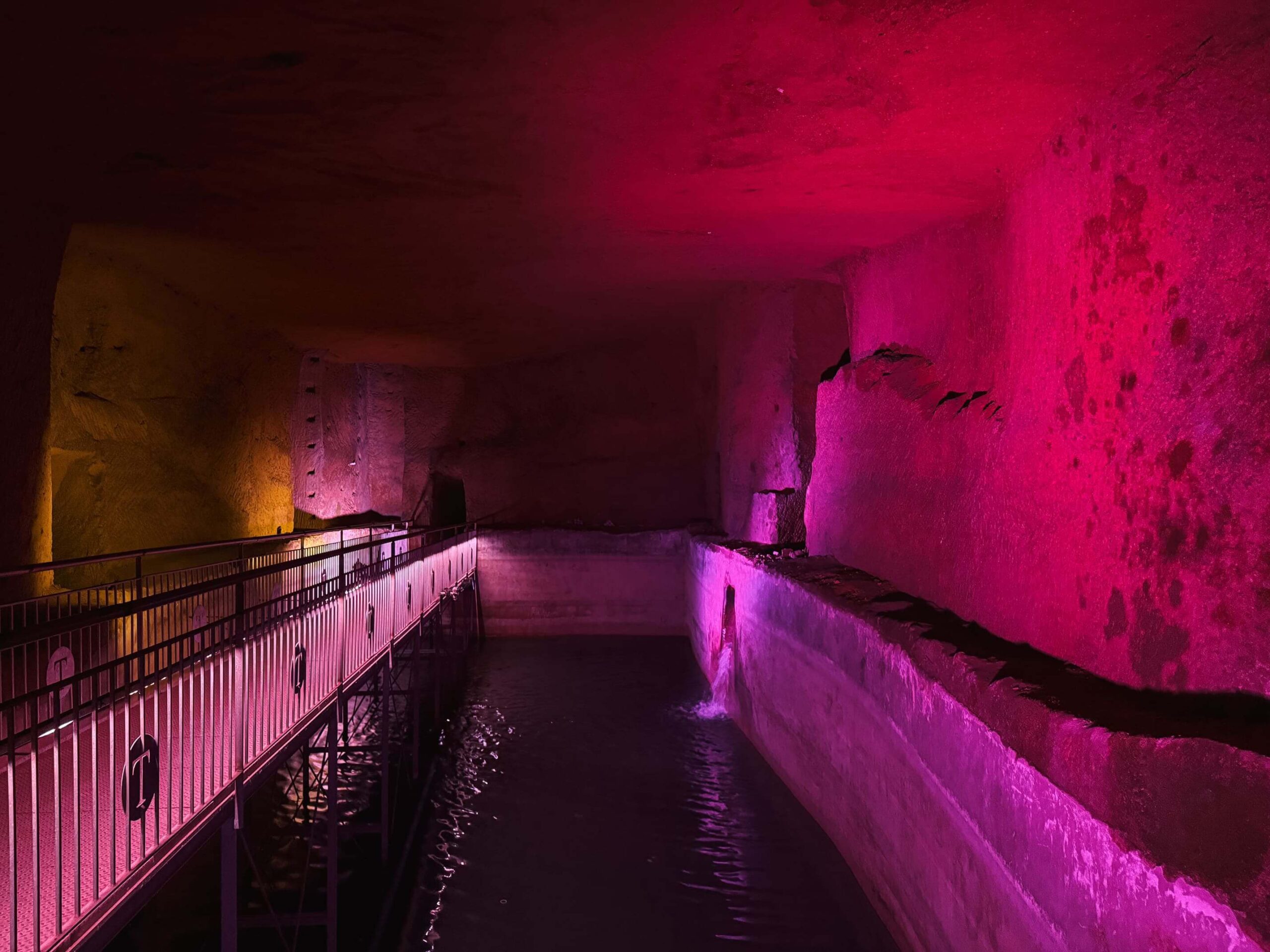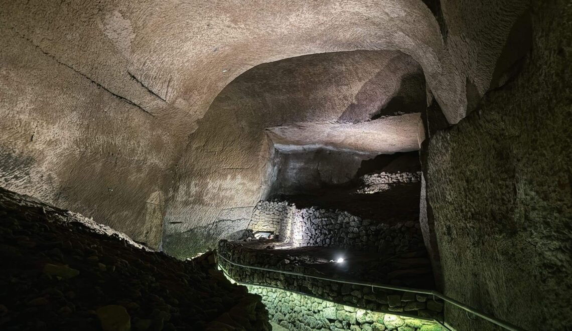 Raggiunta la profondità massima, a circa 40 metri sotto il livello stradale, ci si trova in un ambiente suggestivo e silenzioso, lontanissimo dal caos della città. Qui il percorso attraversa antiche cisterne e strutture idrauliche utilizzate fin dall’epoca greco-romana, fondamentali per l’approvvigionamento idrico di Napoli nel corso dei secoli.