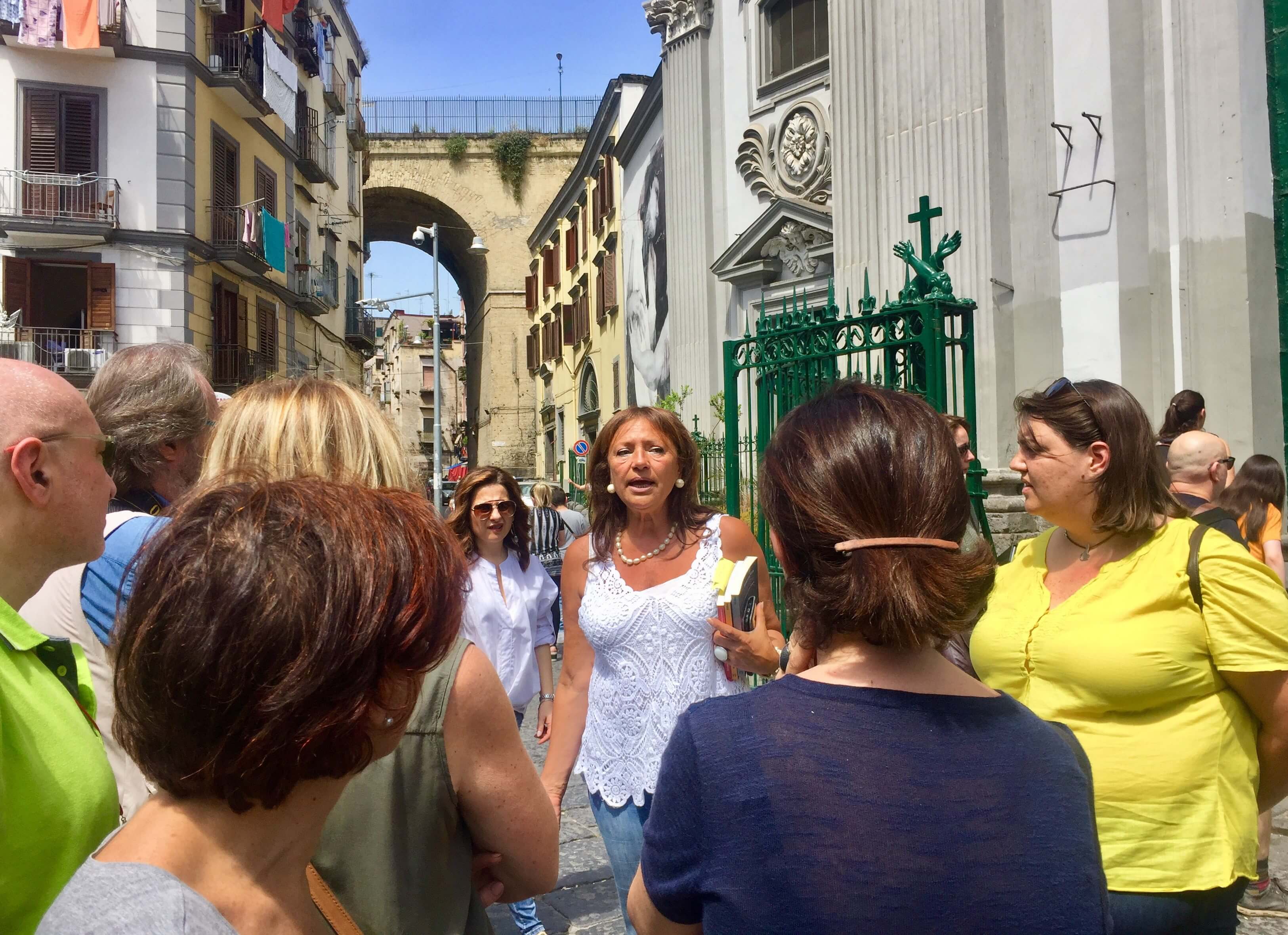 Ad accompagnarci nel nostro tour è proprio la scrittrice Annavera Viva, salentina di nascita ma napoletana di adozione. La visita prende il via dinanzi la Basilica di Santa Maria della Sanità, uno dei più significativi esempi del barocco napoletano. All’interno salta agli occhi la contrapposizione tra la semplicità della struttura e l’opulenza dell’altare.
