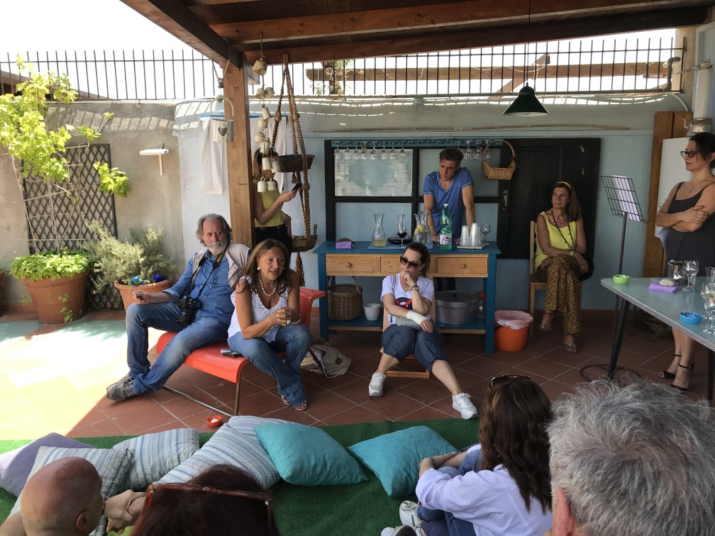 Continuando a passeggiare tra i vicoli di Napoli, arriviamo nel cuore dei Miracoli dove, sulla terrazza panoramica di un palazzo del 1500, si conclude il nostro tour tra letture de La Cattiva Stella interpretate dall’attrice Tiziana Tirrito, ed un aperitivo di vino e sfizioserie napoletane con vista sui tetti della città.