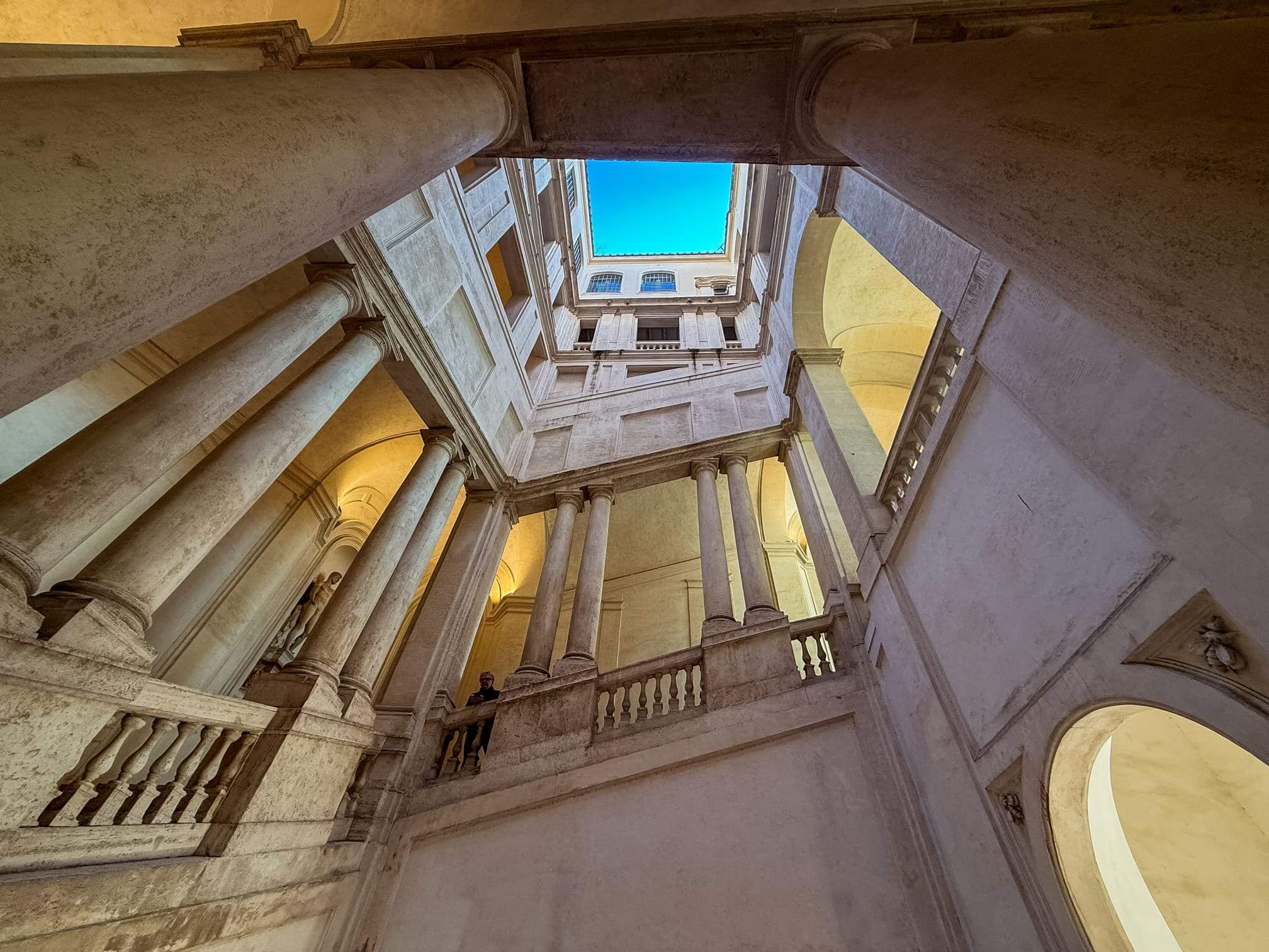 Già dall’ingresso, Palazzo Barberini colpisce per la sua imponenza. All’interno, uno degli elementi più celebri è lo scalone monumentale progettato da Bernini, ampio e scenografico, che dialoga con la più raccolta e raffinata scala elicoidale di Borromini. Due interpretazioni diverse dello spazio, entrambe geniali, che rendono la visita particolarmente suggestiva.