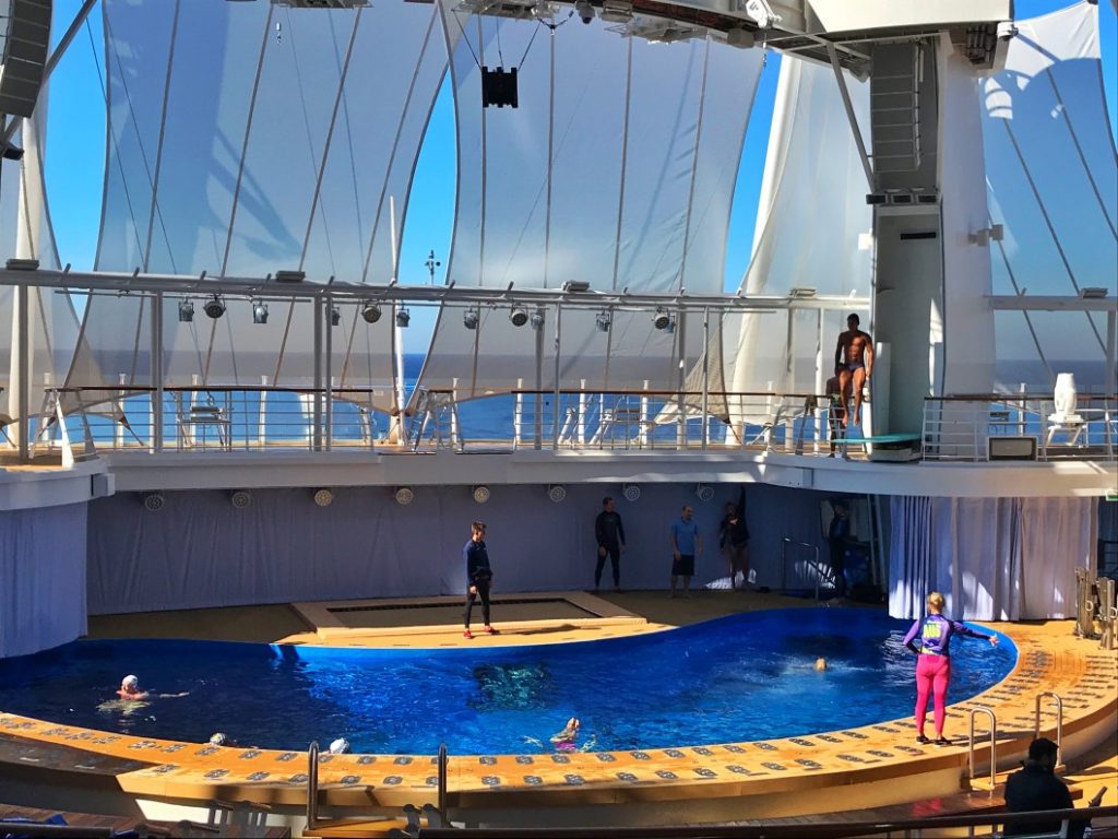 Le ultime due aree sono: la Pool and Sports Zone e l’Entertainment Place. La zona delle piscine e degli sport offre, oltre ai classici di altre navi come la zip line, la parete per arrampicarsi e il simulatore di surf, un divertente complesso di scivoli acquatici chiamato The Perfect Storm e l’adrenalinico The Ultimate Abyss, uno scivolo che con i suoi 45 metri di altezza sul livello del mare è il più alto mai realizzato su una nave da crociera.